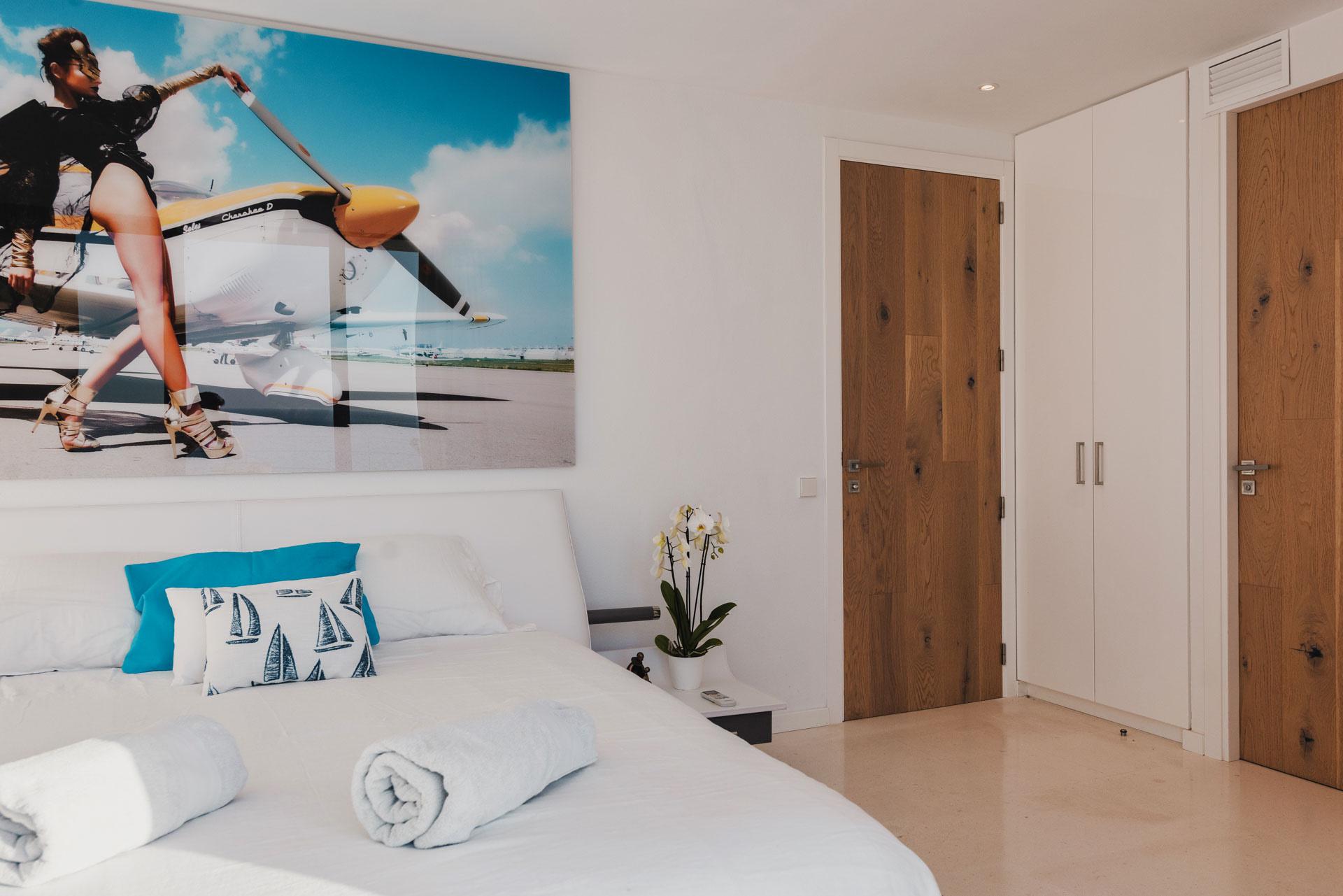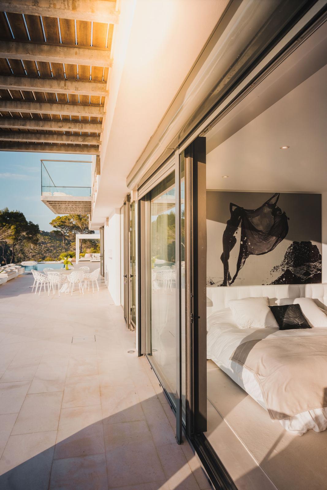 Located only a short drive from San Miguel and Benirrás Beach, this private villa features an infinity pool, multiple sunset terraces, five spacious bedrooms and four bathrooms.