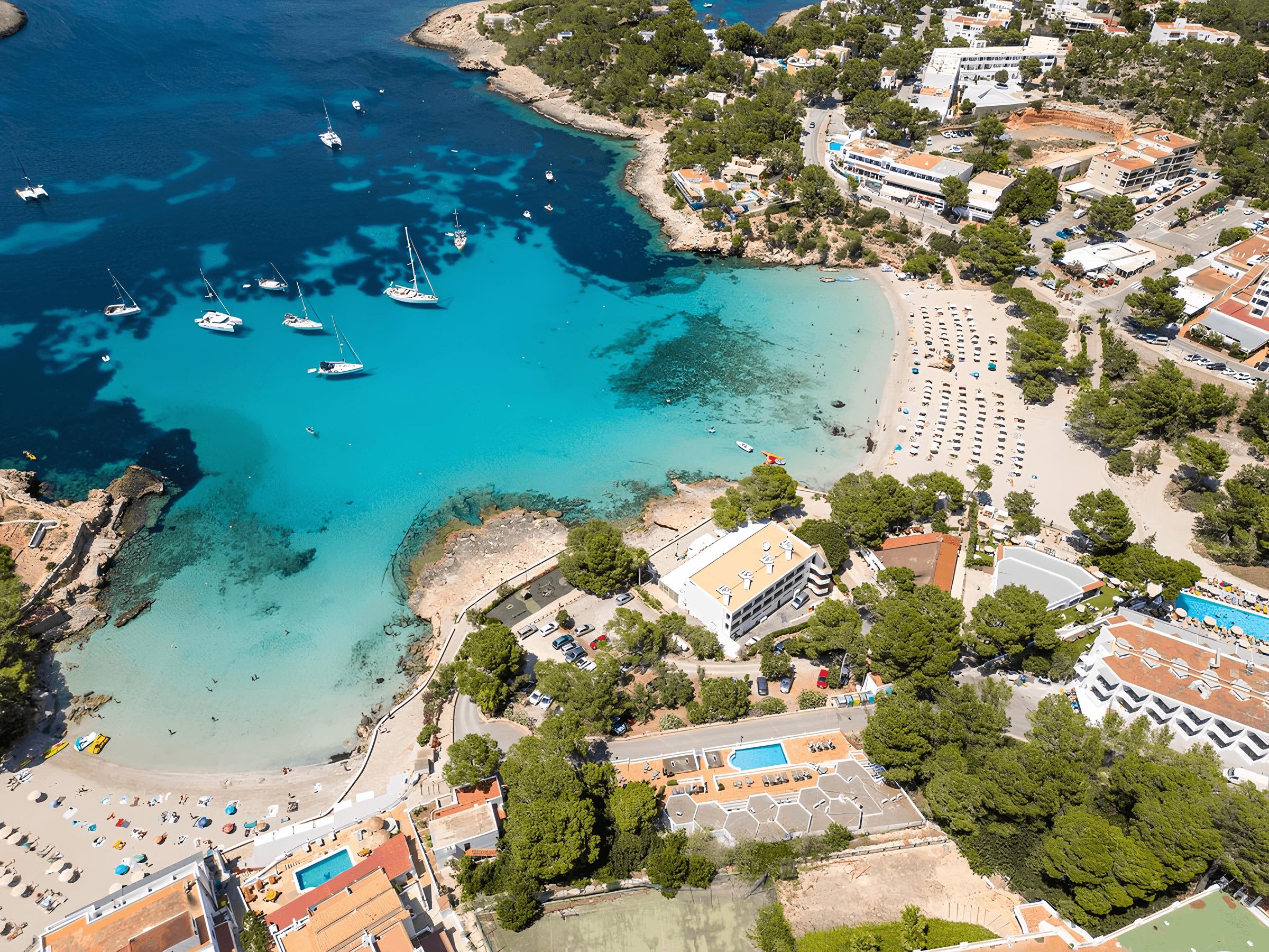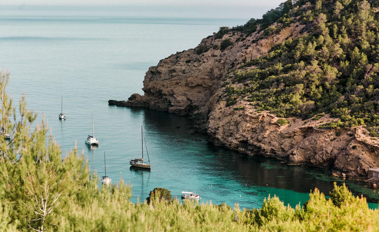 The bay provides one of the most picturesque coastal landscapes in northern Ibiza.