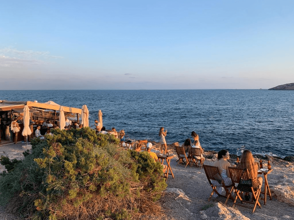 Benirrás is also famous for its traditional sunset drumming gatherings, a long-standing cultural tradition on the island that creates a unique atmosphere at the end of the day.